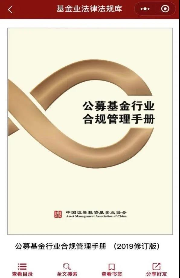 協(xié)會(huì)《公募基金行業(yè)合規(guī)管理手冊(cè)》在“中國(guó)基金業(yè)法律法規(guī)庫(kù)”小程序 中正式上線(xiàn)